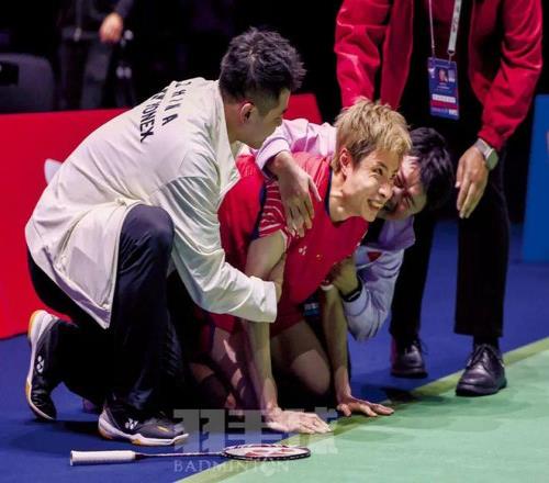 此后,石宇奇展现出了更加成熟的应对,险象环生中他连追4分,以22比20惊险将比赛拖入决胜局。石宇奇显然对比赛更有把控力,面对赖浩俊的种种极限救球,他拿出足够耐心与之周旋,最终,以21比16逆转取胜。再一次耗时80分钟的苦战,石宇奇站到混采区后,刚刚经过高强度的消耗,让他的身体不受控的前后摇晃。眼疾手快的志愿者端来面包,石宇奇不由分说两三口就吞了下去,这才缓过神来。