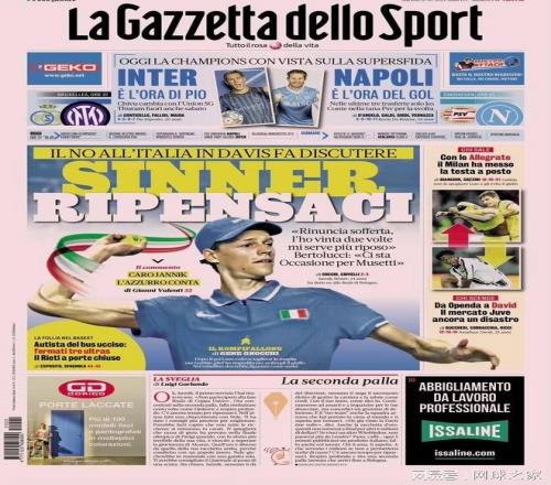 值得一提的是,辛纳此前已两次帮助意大利赢得戴维斯杯冠军。今年虽然退赛让人感到可惜,但按理说,一则,辛纳给出的理由也有理有据,毕竟本赛季温网结束后,辛纳的伤病就不断,如今选择适当放弃一部分比赛,充分休息,按道理也是理所应当;二则,意大利队人才储备充足,前有贝雷蒂尼这样的猛将,后有科博利这样的新生代小将,因此,即便失去了辛纳,但卫冕其实也并非就完全不可能。