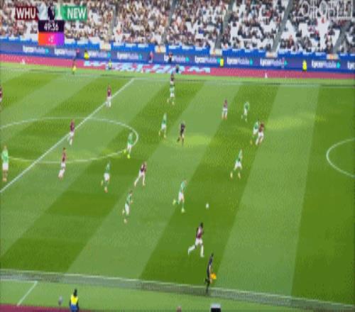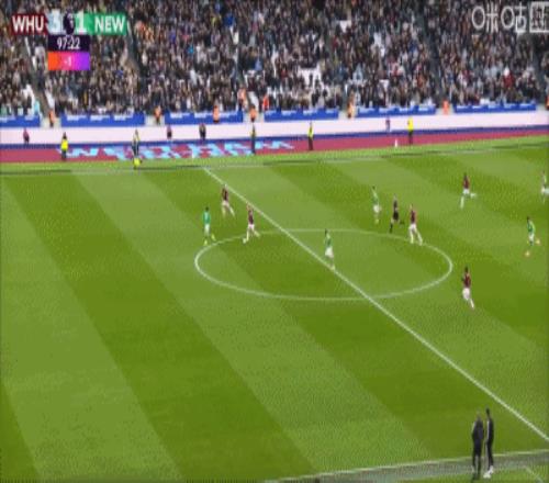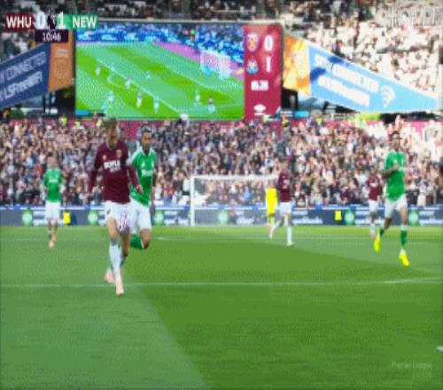 第36分钟,世界波!帕奎塔精彩远射扳平比分,西汉姆1-1纽卡