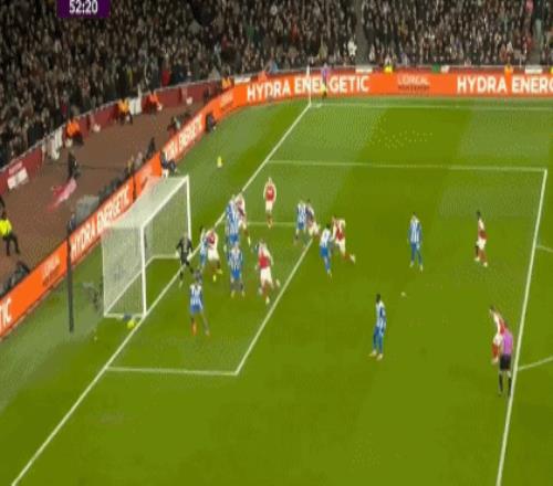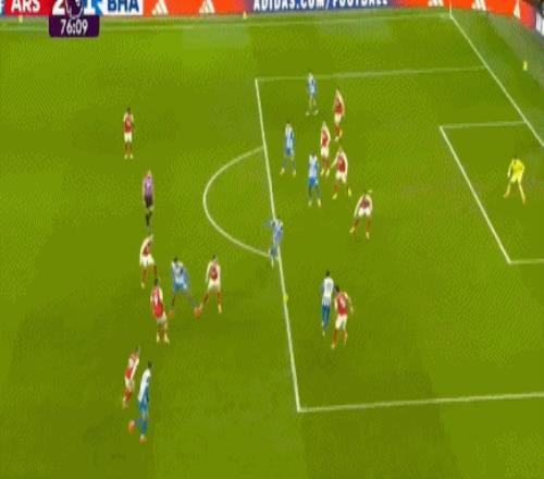 第76分钟,布莱顿再次踢出默契配合,明特禁区内起脚兜射,直取球门左上角,拉亚回敬极限扑救,飞身单掌托出横梁,救了阿森纳一命。