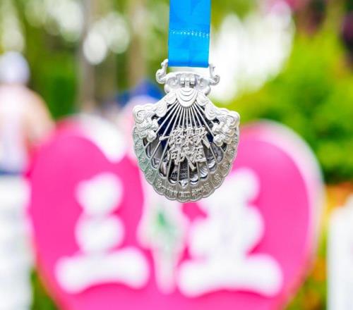 完赛奖牌则以三亚海洋贝壳为核心灵感,复刻贝壳随潮汐翕张的自然韵律,以 “包容蓄力、共生向阳” 为内核,传递 “突破自我、向海而行” 的赛事精神。