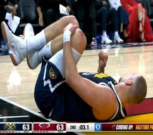 队友退防不慎踩到他的脚,导致约基奇左膝过度伸展受伤,伤病也是牵一发而动全身