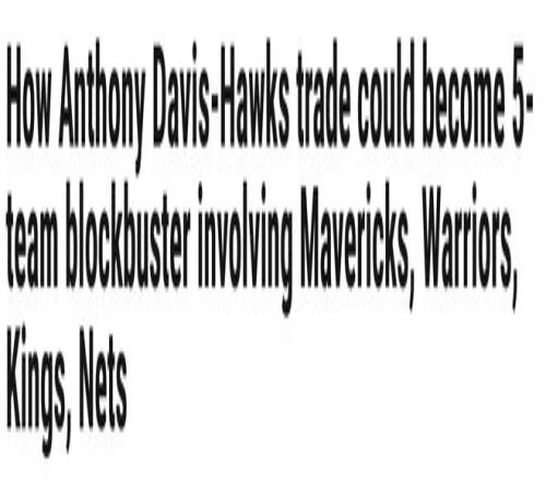 同时,ClutchPoints表示,浓眉哥加盟老鹰的交易不仅存在实现可能,甚至有可能扩展为涉及多支球队的重磅交易。该媒体晒出一笔涉及老鹰、独行侠、国王、勇士与篮网的五队交易方案,具体交易详情如下: