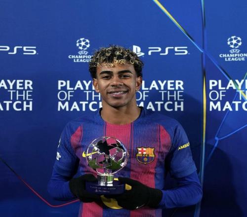 欧冠联赛阶段第8轮,巴塞罗那主场4-1击败哥本哈根,此役传射建功的巴萨前锋亚马尔当选欧冠官方全场最佳球员。