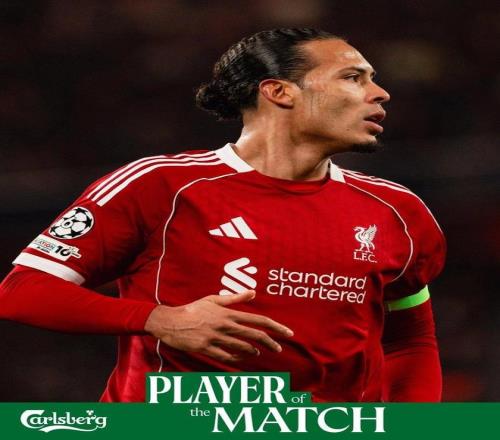 利物浦官方宣布,范戴克当选球队与卡拉巴赫一役队内最佳球员。