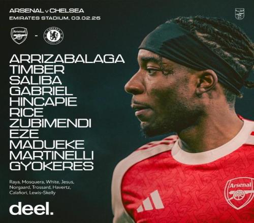 北京时间2月4日04:00,英联杯半决赛次回合的一场对决。首回合,阿森纳客场3-2切尔西。次回合,阿森纳坐镇主场,迎战切尔西。赛前双方的阵容公布如下: