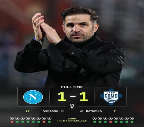 随后双方进入的拉割战,科莫防线压缩空间,反击持续制造威胁。斯莫尔契奇远射、杜维卡斯头球、沃伊沃达禁区抽射……机会虽未转化,却持续消耗那不勒斯的体能与耐心。孔蒂连续换人,斯皮纳佐拉、波利塔诺、卢卡库相继登场,意图用冲击力解决战斗。然而,科莫的防守组织极具纪律性,法布雷加斯的临场指挥显得异常冷静。常规时间1-1,比赛直接进入点球大战。