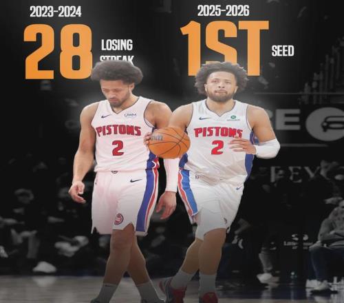 2023年选秀大会,活塞摘走奥萨尔-汤普森;2024年选秀大会,活塞选择了罗纳德-霍兰。如今活塞两大核心是坎宁安(2021年状元秀)和杰伦-杜伦(2022年首轮13号秀)。2024-25赛季,活塞已经开始崛起:44胜38负东部第六。