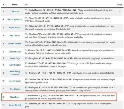 对了,张博源已被多家美国权威体育媒体评为四星高中生,其中在选秀网站Rivals发布的2026届全美高中生最新排名中位列全美第25,成为该榜单排名最高的中国球员。
