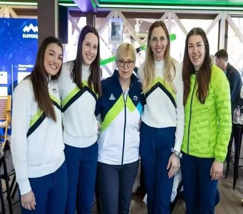 斯洛文尼亚总统娜塔莎身穿匹克装备看望本国代表团