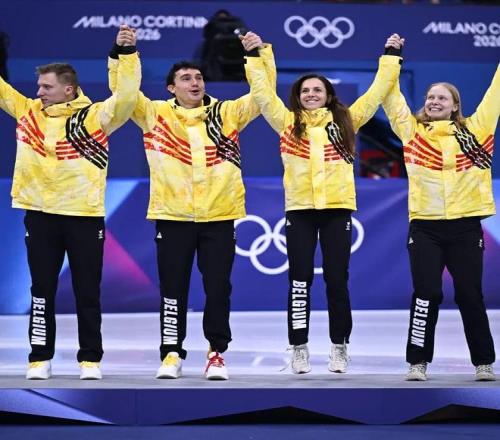 比利时队短道速滑混合团体接力历史性摘铜