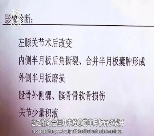 踝骨、髌骨、韧带、关节,统统有伤,双腿半月板已经碎片化,手术切除了70%半月板。