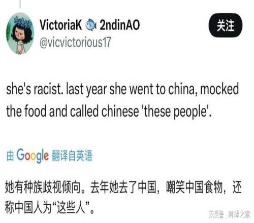 网友一针见血地指出,竞技体育的确需要用成绩说话,但做人的基本礼貌和文化尊重,同样是“立身之本”,“在球场上作为母亲运动员坚持奋斗确实值得敬佩,但一边想在中国捞金,一边又对这里的一切充满鄙夷,这种‘双面人’做派,注定她赢不了人心。”
