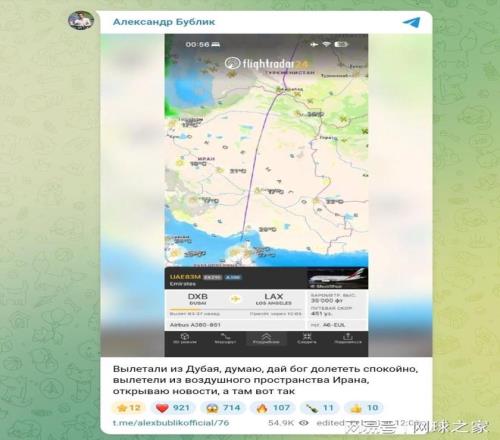 “我们离开迪拜时心想:如果上帝允许,这趟飞行会平安无事。我们才刚飞离伊朗领空,我就看了新闻,目睹了发生的一切。”布勃利克透露,当时飞机上所有人都很紧张,然后便开始祈祷,希望一切顺顺利利的。最终安全落地美国,飞机上的所有人都长出了一口气。