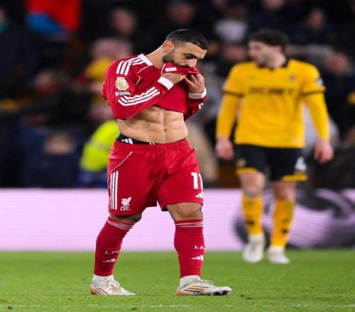 2分钟后,利物浦终于将比分扳平。狼队中场回传失误,萨拉赫断球后强行杀入禁区抽射破门,利物浦1-1狼队。这是萨拉赫近三个月来的首粒联赛进球,他握拳怒吼,斯洛特在场边鼓掌,似乎一切将朝着豪门逆转的方向发展。随后红军的攻势更猛,大举压上,却始终无法再度破门。