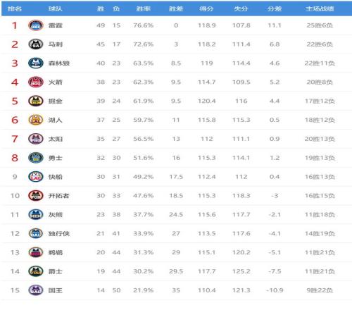 今日比赛后火箭、森林狼排名互换,其他西部球队排名不变。