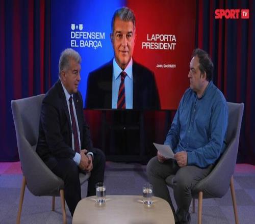 我们现在正在《每日体育报》采访即将离任的巴塞罗那足球俱乐部主席,同时也是下周日选举中“保卫巴萨”竞选团队的候选人,您好,拉波尔塔先生!