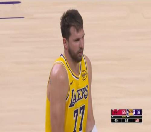 剩下1分44秒前,湖人再次被追到11分,然后东契奇造犯规,在罚球线上得到了个人第51分。