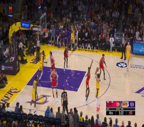 常规赛,湖人主场142-130战胜公牛。