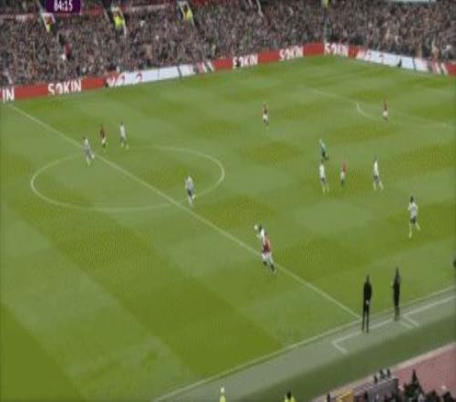 第43分钟,曼联反击,B费左路内切,禁区外右脚远射打偏。