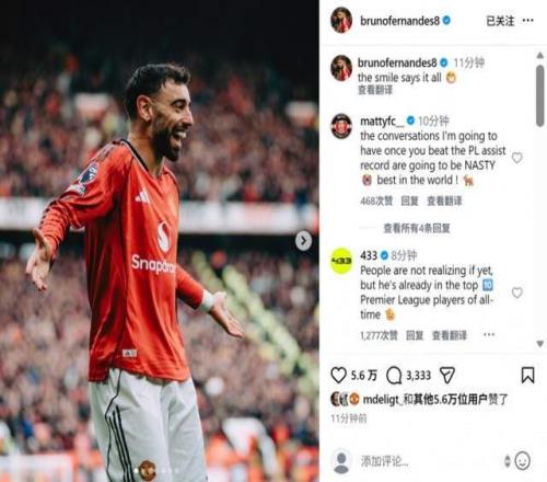 当被问及B费能否打破德布劳内的助攻纪录时,卡里克更看重团队利益:“也许吧,但我更希望球队能够赢球。这不是刻意追求的东西,它会自然而然地发生。如果他能做到,那当然很好,因为他为我们创造了进球的机会。”