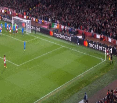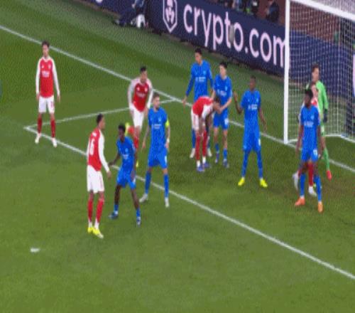 第8分钟,萨卡开出角球,加布里埃尔顶在肩膀上出了底线