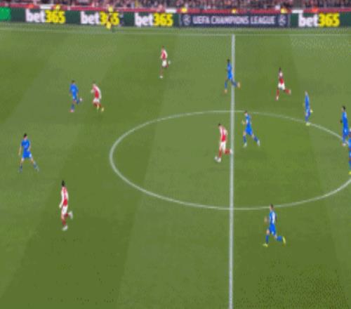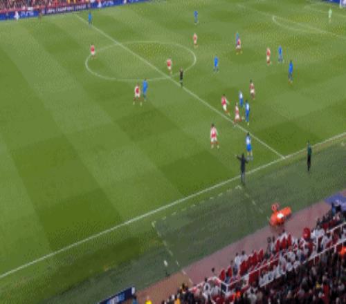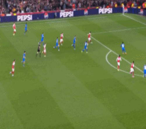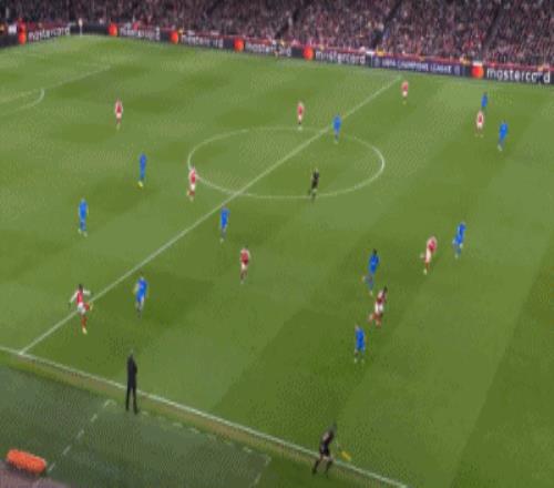 第20分钟,空间太小,阿森纳前场连续配合被断