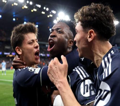 欧冠1/8决赛次回合的比赛展开争夺。曼城在主场迎战皇马。这场比赛开场后曼城疯狂进攻,但是,谢尔基、罗德里和赖因德斯等人的射门都没有打进。伯纳多-席尔瓦在门线上手球犯规,被红牌罚下,送给皇马点球机会。维尼修斯点射破门,帮助皇马取得领先。这让曼城陷入了绝境。虽然人数劣势,但曼城不得不强行进攻,比赛变得非常开放。在第41分钟,哈兰德进球了,把比分扳平。皇马踢得简单直接,屡次创造出机会。在最后补时阶段,维尼修斯再进一球。最终曼城1-2落败,两回合1-5总比分被皇马双杀淘汰出局。