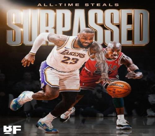 本场比赛过后,詹姆斯生涯抢断总数(常规赛+季后赛)来到2892个,超越乔丹上升至NBA历史第四位!